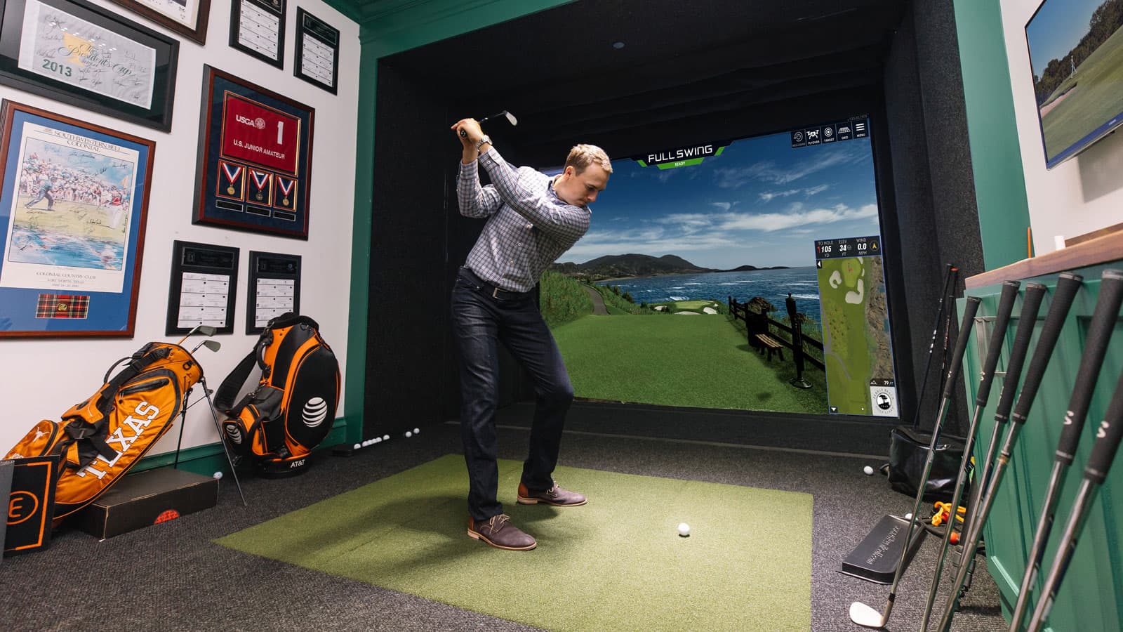 Thanks to Full Swing's Simulator technology, Jordan can be prepared for anything using customizable practice areas and playing the world's most iconic courses, all while seeing his real ball-flight on-screen with no delay.